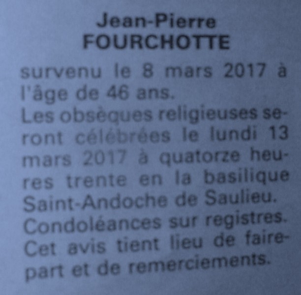 Le Conseil d’Administration "Les Fourniers" a la tristesse de vous informer du décès de Jean-Pierre FOURCHOTTE