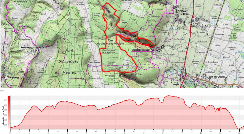 Parcours d'environ 12 Km  et 400 m de dénivelée