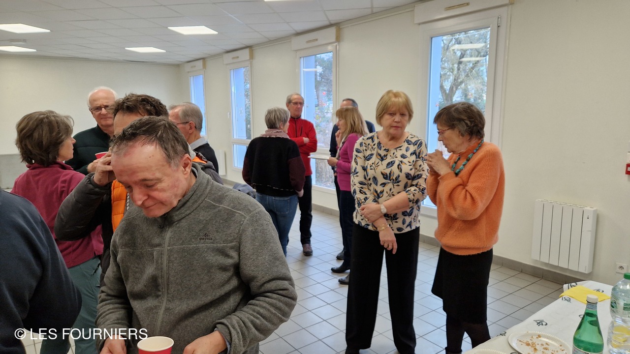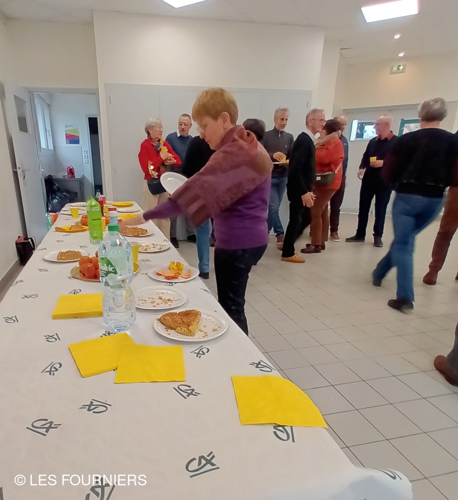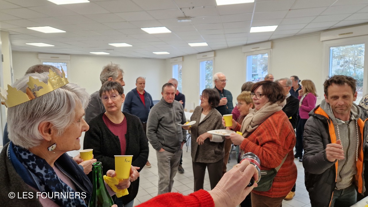 C'est maintenant presque une tradition: se rencontrer en début d'année pour fêter les rois autour de la galette à la frangipane ( ou la galette aux pommes pour certains ) 23 adhérents (ou conjoints) de l'association s'étaient inscrits pour cet après-midi de rencontre qui a eu lieu le 2 février 2025 à la salle Eugène Bouret, prêtée pour l'occasion par la ville de Dijon. Comme à l'habitude, certains sont arrivés en retard, prenant le risque de rater l'occasion d'avoir la fève et d'être couronné. D'autres anciens de l'entreprise, habitant près de la salle, sont venus donner de leurs nouvelles et partager les souvenirs des années passées ensemble au travail. Les discussions se sont poursuivies dans l'après-midi autour d'un verre de cidre.