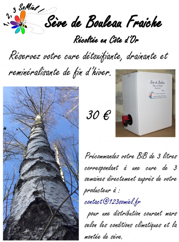 Nos amis de 1,2,3 SoMiel nous informent que vous pouvez commander votre cure de Sève de Bouleau dès à présent (par mail à: 123somiel.fr)